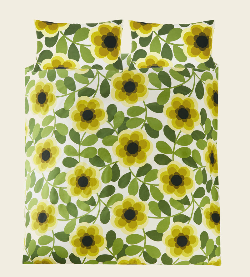 Brighten your bedroom with the Giant Water Lily bed linen. In a fresh green and yellow colour palette.