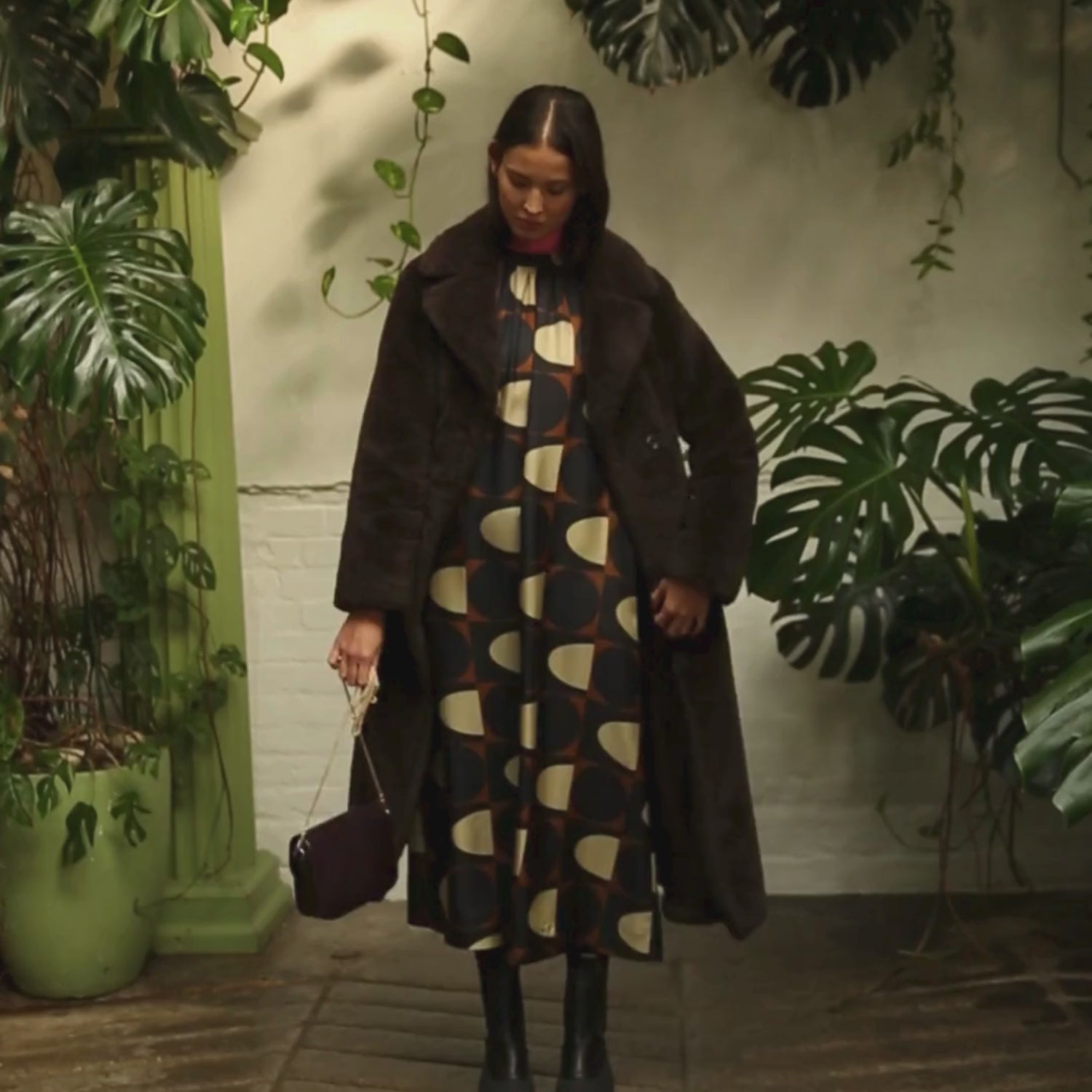 Orla Long Sleeve Midi Silk Dress - Giant Spot Square Mocha