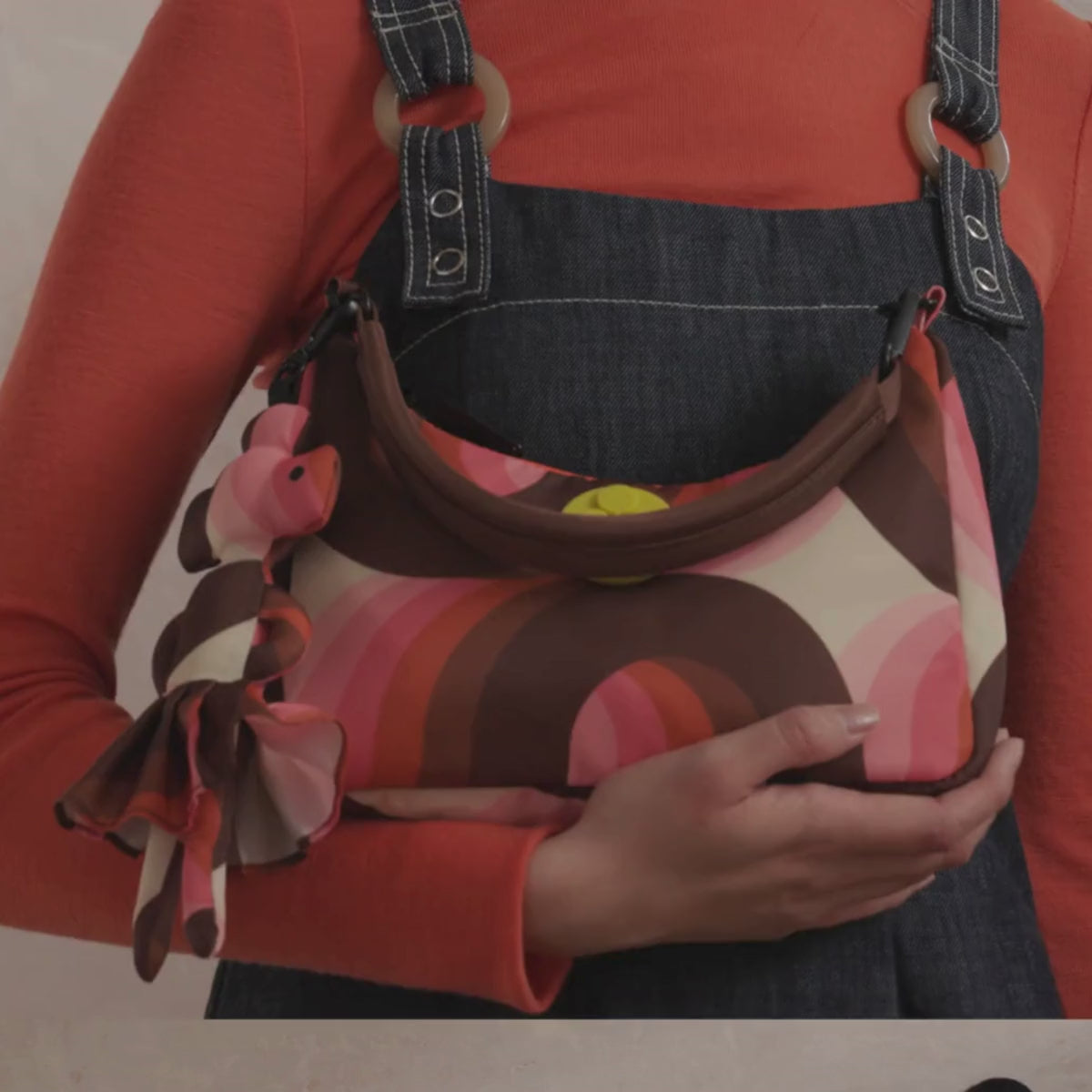 Bold, rhythmic and unapologetically retro, our Rolling Waves print is all about movement and mood. A playful mix of pinks, oranges and browns gives the print a fun, space-age feel - almost other-worldly. With clear nods to the 70s and 80s, it channels a joyful, nostalgic energy while still feeling fresh and wearable. A true statement print, and a firm favourite of Orla herself.