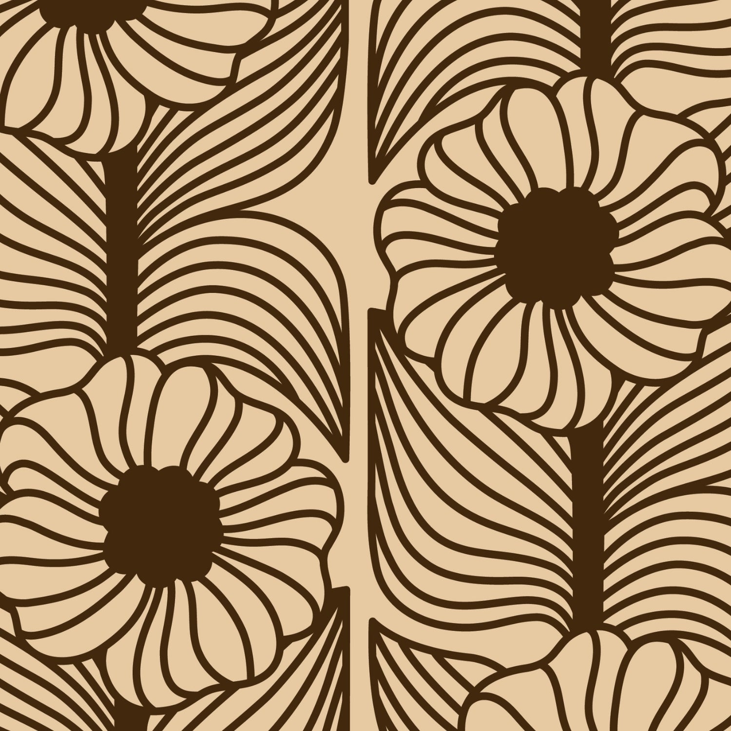 A brand new addition to the collection, our Moonflower print reintroduces texture in a fresh, modern way. Moving away from flat block colour, the print is built from soft, linear lines that create depth and movement across the surface. The result feels tactile and graphic at the same time - a contemporary evolution of Orla’s love of bold florals, with a lighter, more expressive hand. The warm walnut tones feel grounded yet ancient.